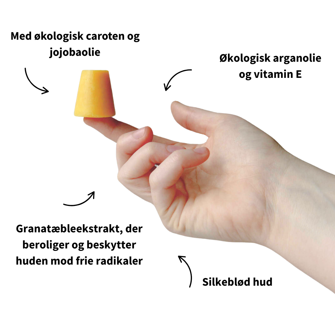 Indeholder økologisk arganolie, jojobaolie og caroten, der plejer huden i dybden.
