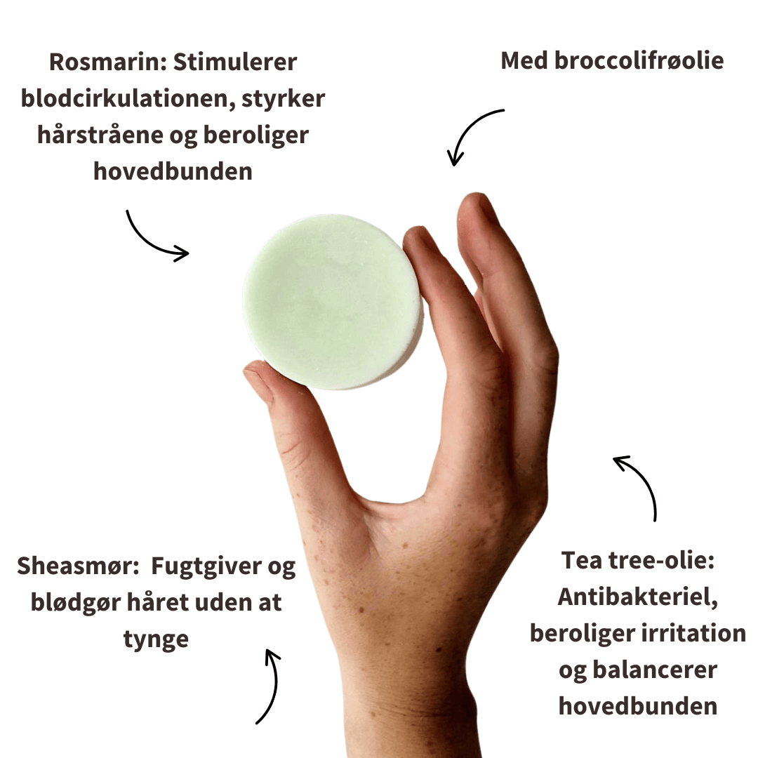 - ✨ Rosmarin – Stimulerer blodcirkulationen, styrker hårstråene og beroliger hovedbunden
