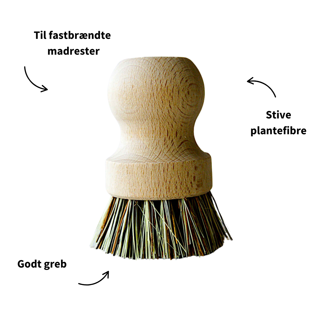 Effektiv rengøring: Stive plantefibre skrubber fastbrændte madrester væk – ideel til gryder og støbejern.