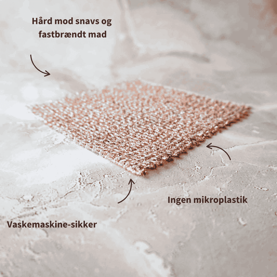Effektiv kobberklud til rengøring af fastbrændt snavs – uden at ridse overfladen. Kan vaskes i maskine og bruges igen og igen.