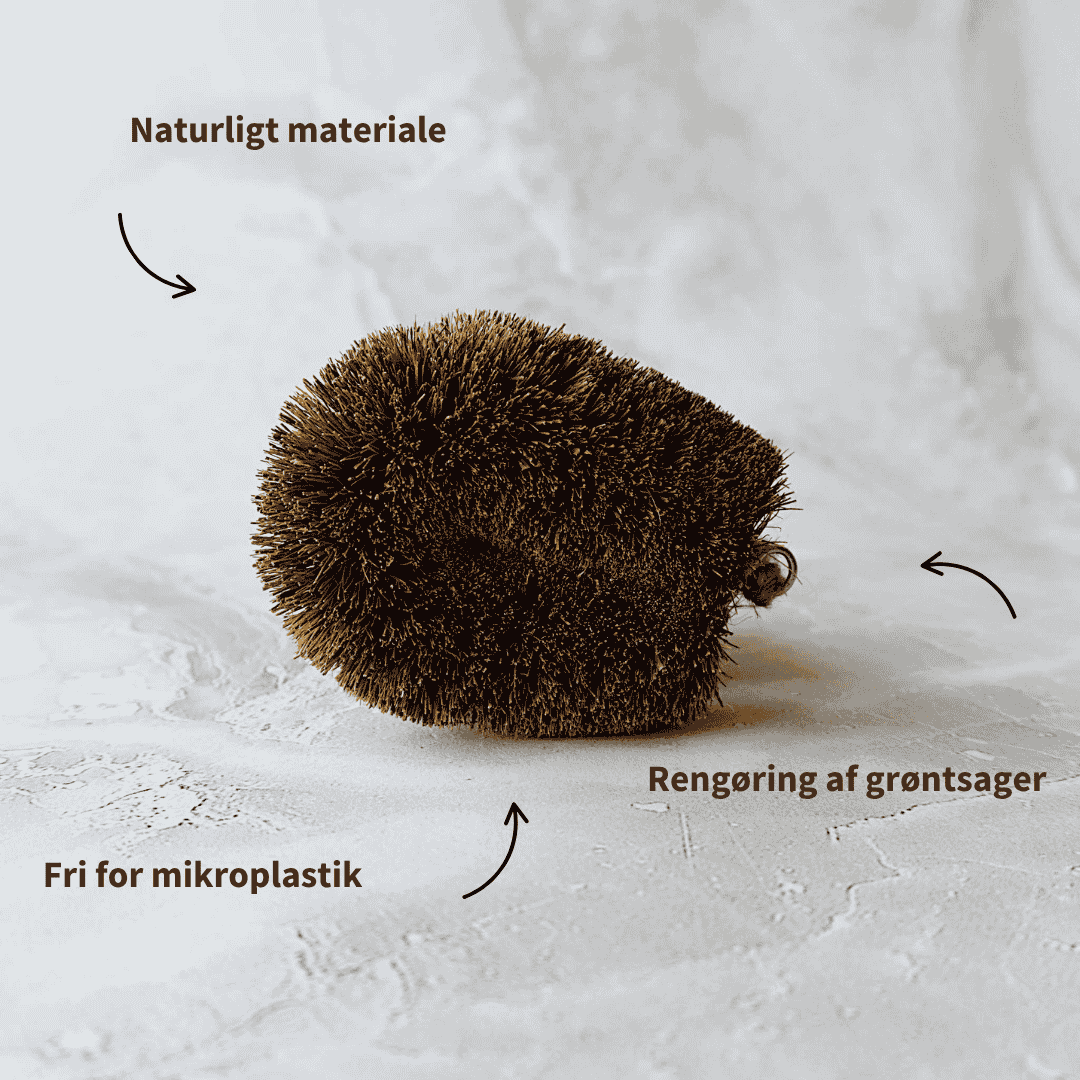 Den er lavet af naturlige kokosfibre, som er biologisk nedbrydelige og fri for plastik.