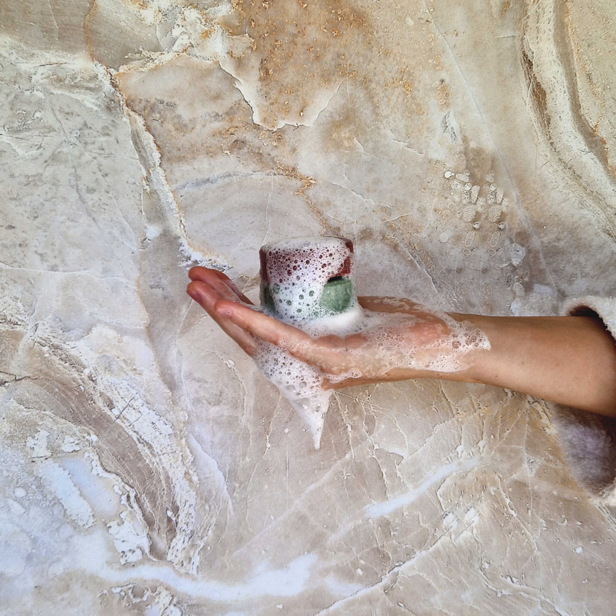 Sodium Cocoyl Isethionate, Cetyl Alcohol, Butyrospermum Parkii Butter, Behentrimonium Methosulfate, Stearic Acid, Brassica Campestris Seed Oil, Lavandula Angustifolia Oil, Rosmarinus Officinalis Leaf Oil, Argania Spinosa Kernel Oil, Panthenol, CI 77491, CI 77492, CI 77499, *Camphor, *Pinene, *Limonene, *Beta-Caryophellene, *Terpineol, *Linalool, *Alpha-Terpinene, *Terpinolene