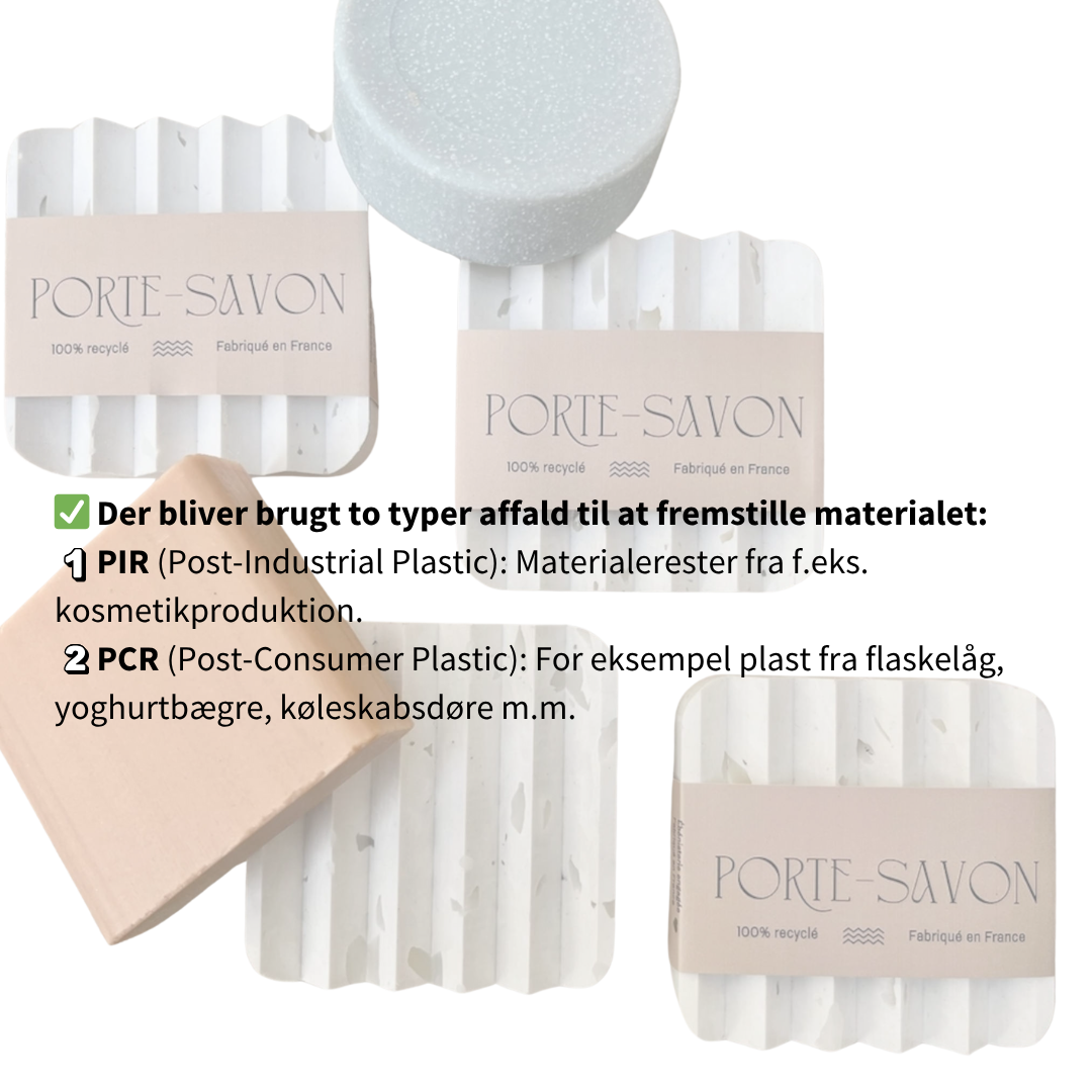 ✅ Der bruges to typer genanvendt plast til at fremstille sæbeholderen: